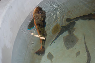 Nautische hoek in de visafslag met divers
