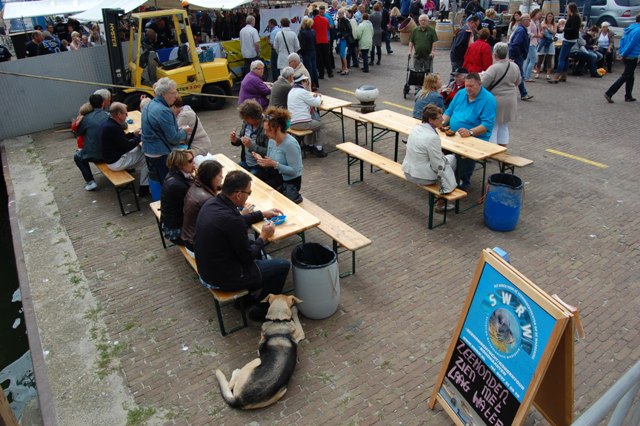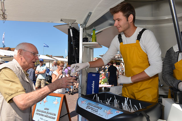 Iedereen die producten, of die nu wel of niet met de visserij te maken hebben, aan de man wil